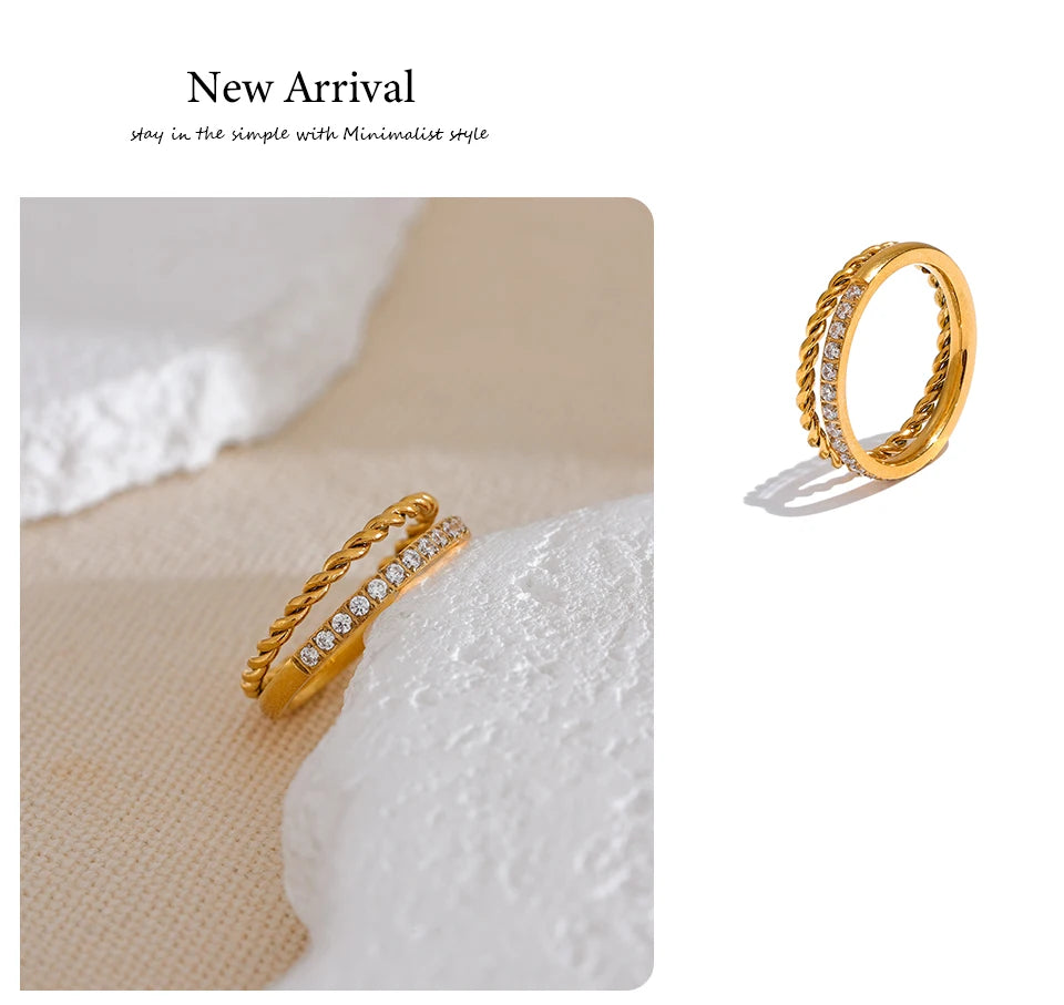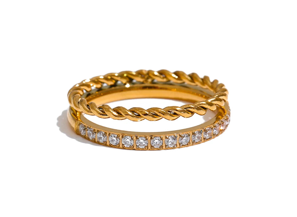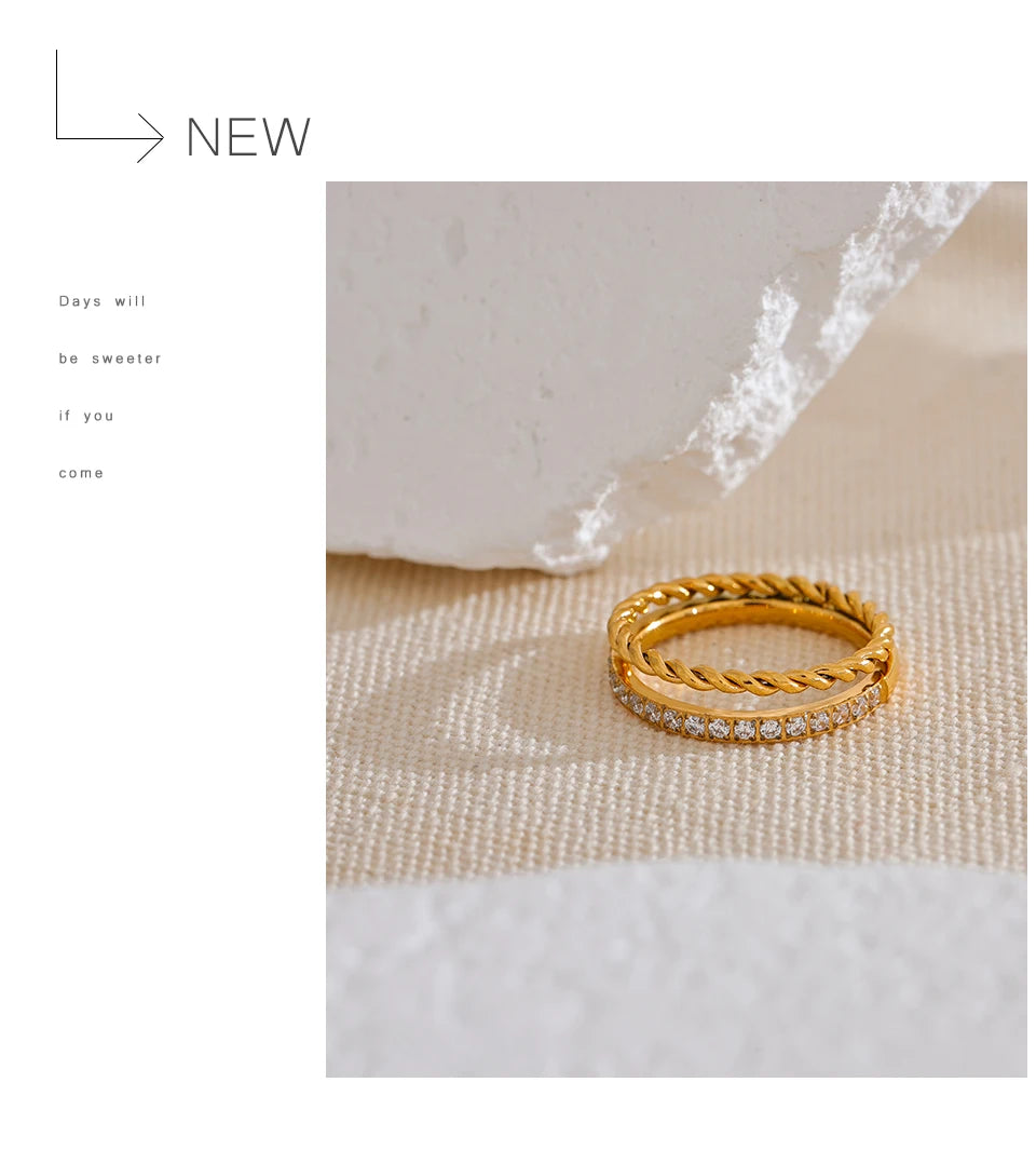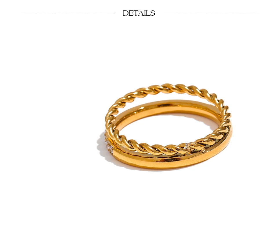 A golden braided ring that combines timeless elegance with modern design. Crafted with waterproof, tarnish-resistant material, it keeps its shine and style season after season.