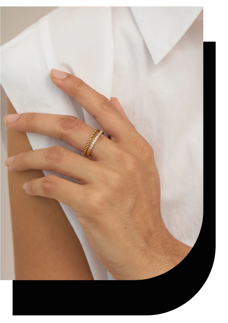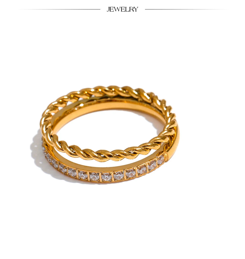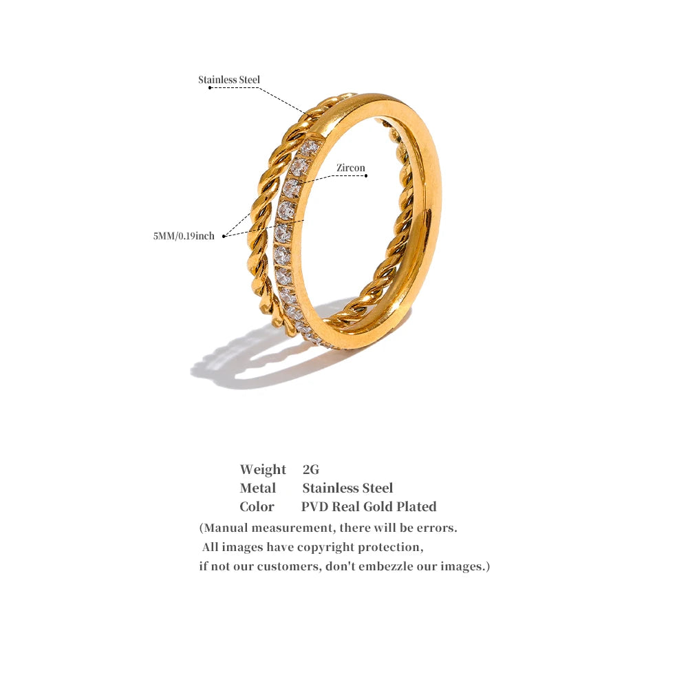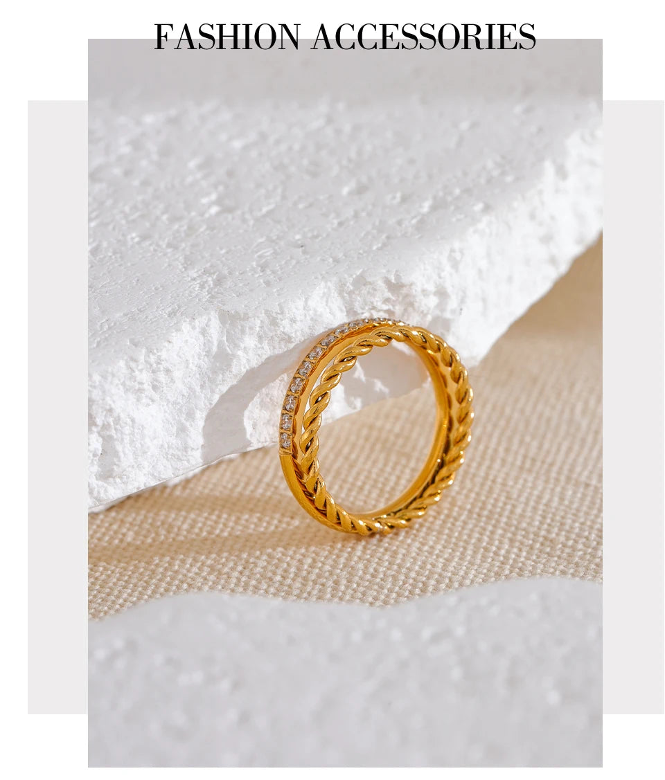A golden braided ring that combines timeless elegance with modern design. Crafted with waterproof, tarnish-resistant material, it keeps its shine and style season after season.