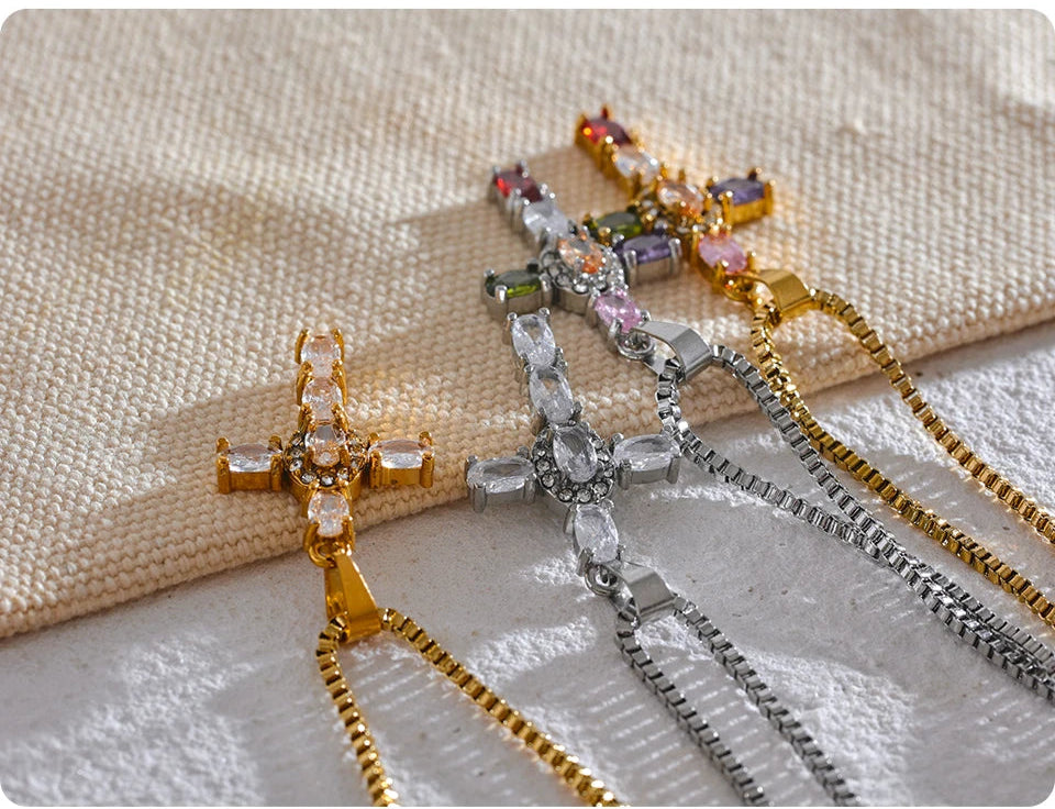 Express your faith and style with our CelestiCross Charm, a stunning blend of spirituality and modern elegance. Crafted from high-quality stainless steel with PVD real gold plating, this pendant features sparkling cubic zirconia stones, adding a radiant touch to a timeless design.