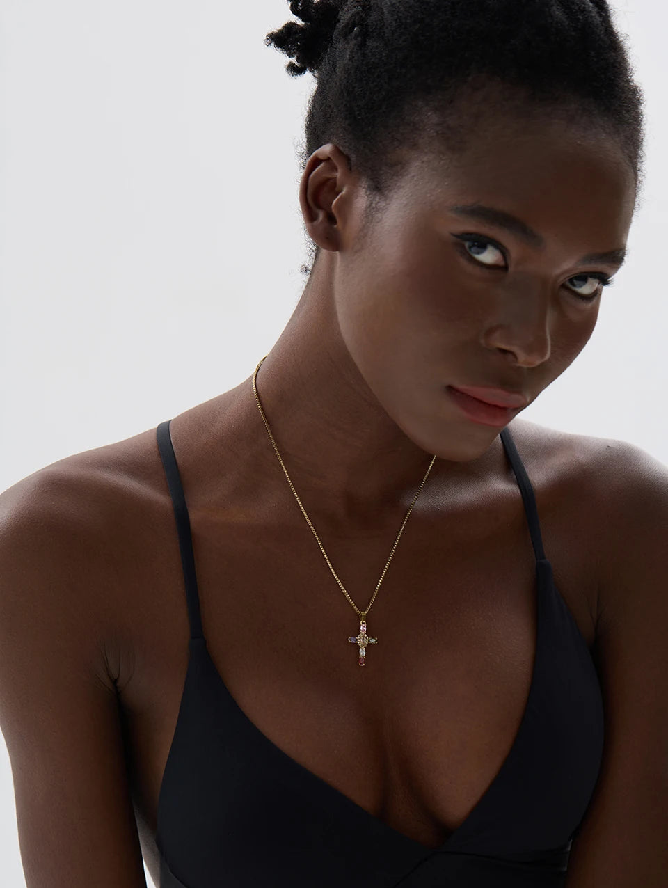 This chic and timeless cross pendant is the perfect accessory to showcase your faith with elegance. Whether worn alone as a statement piece or layered with other necklaces, its CZ sparkle and sleek gold finish make it a must-have for every jewelry lover