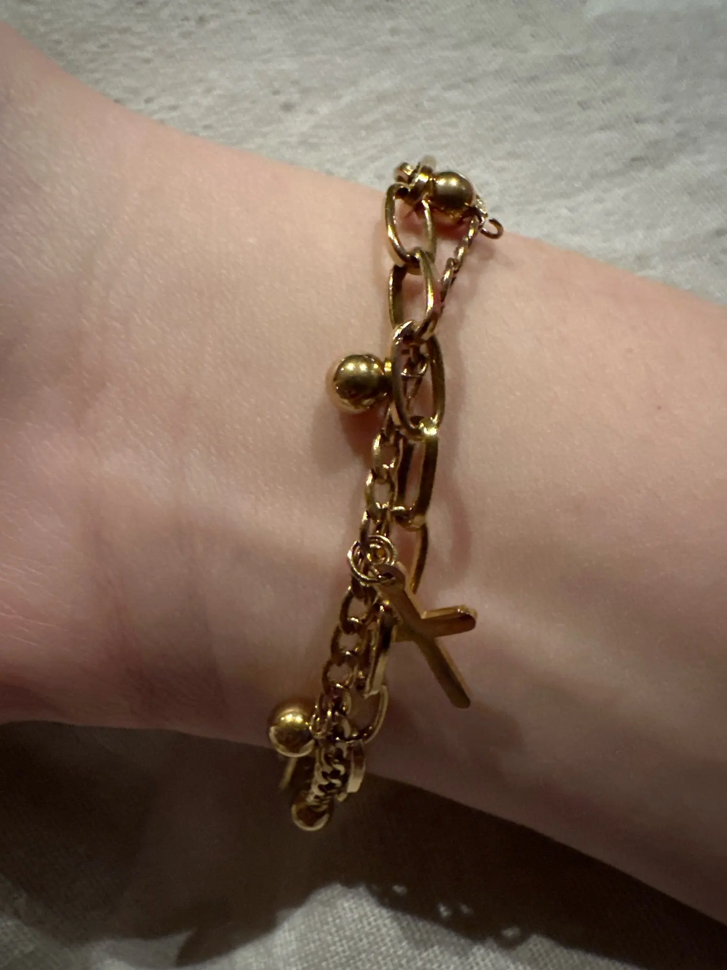 This sophisticated and trendy charm bracelet is perfect for any occasion, whether you're dressing up for an event or adding a stylish touch to your everyday look. Its charm and elegant gold finish make it a must-have for every jewelry lover