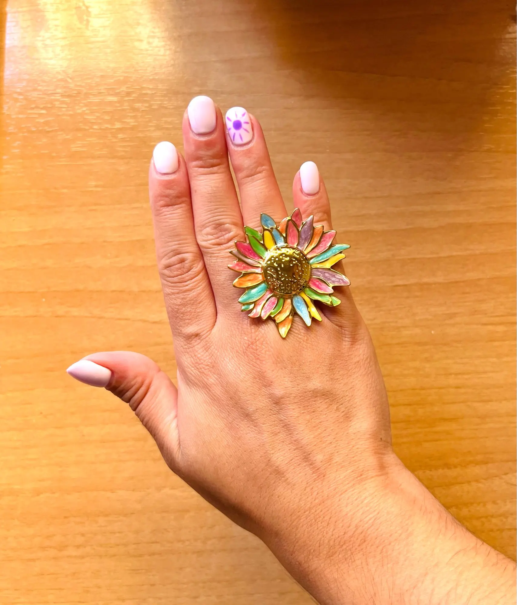 Add a playful twist to your look with these floral brooch pins – perfect for summer dresses, bags, or hair accessories. A splash of color with a golden heart.
