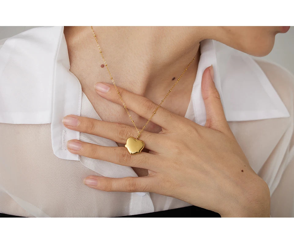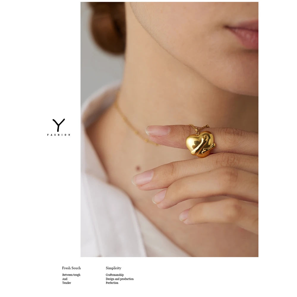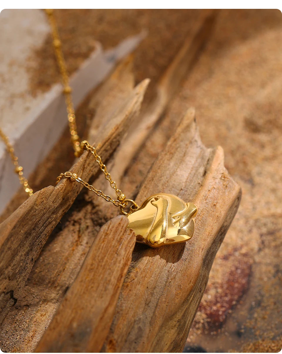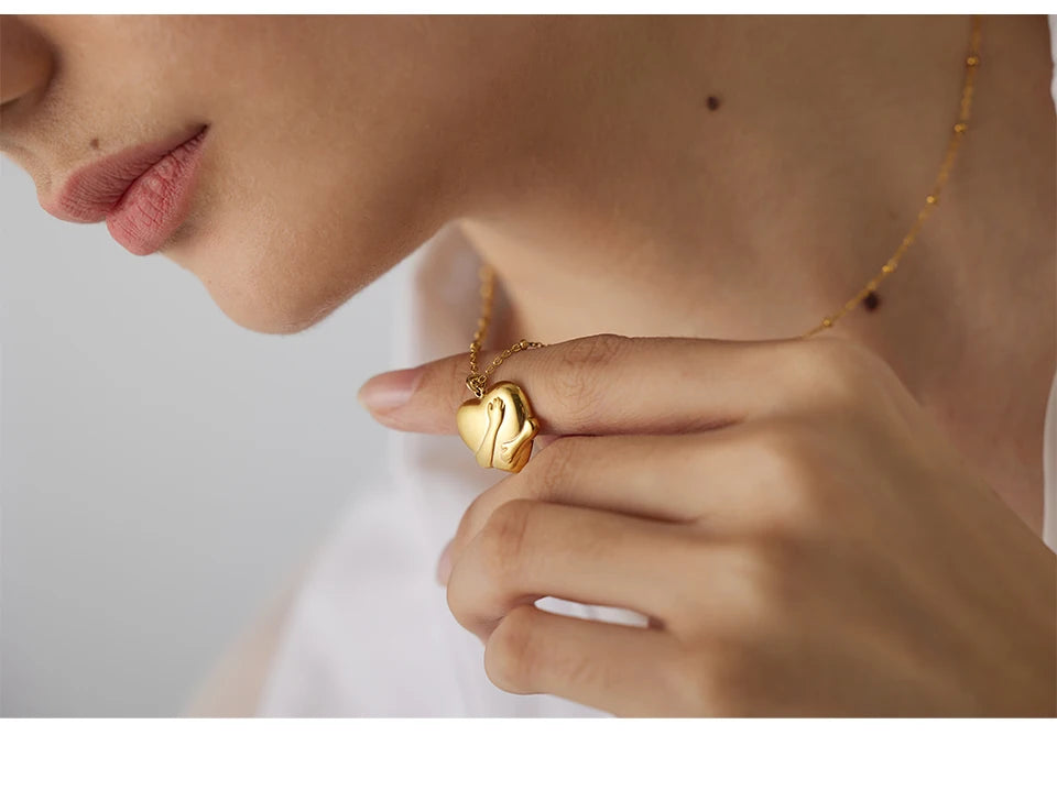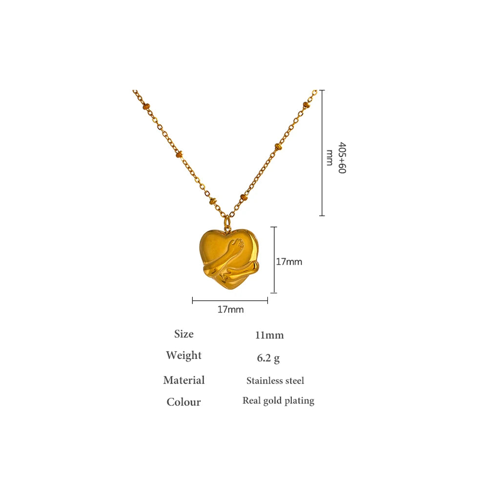 A meaningful heart-shaped pendant featuring an elegant embrace design, symbolizing love and protection. The refined golden finish makes it a timeless piece for everyday wear or gifting.