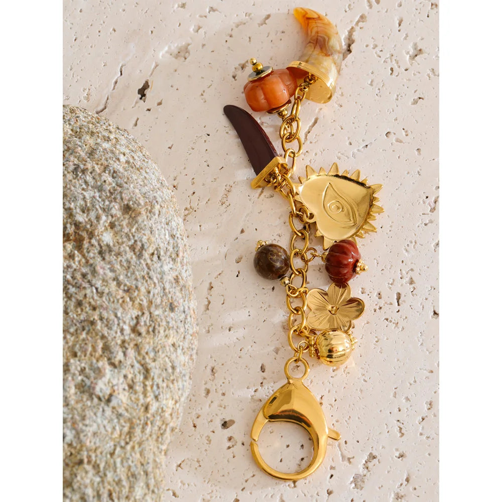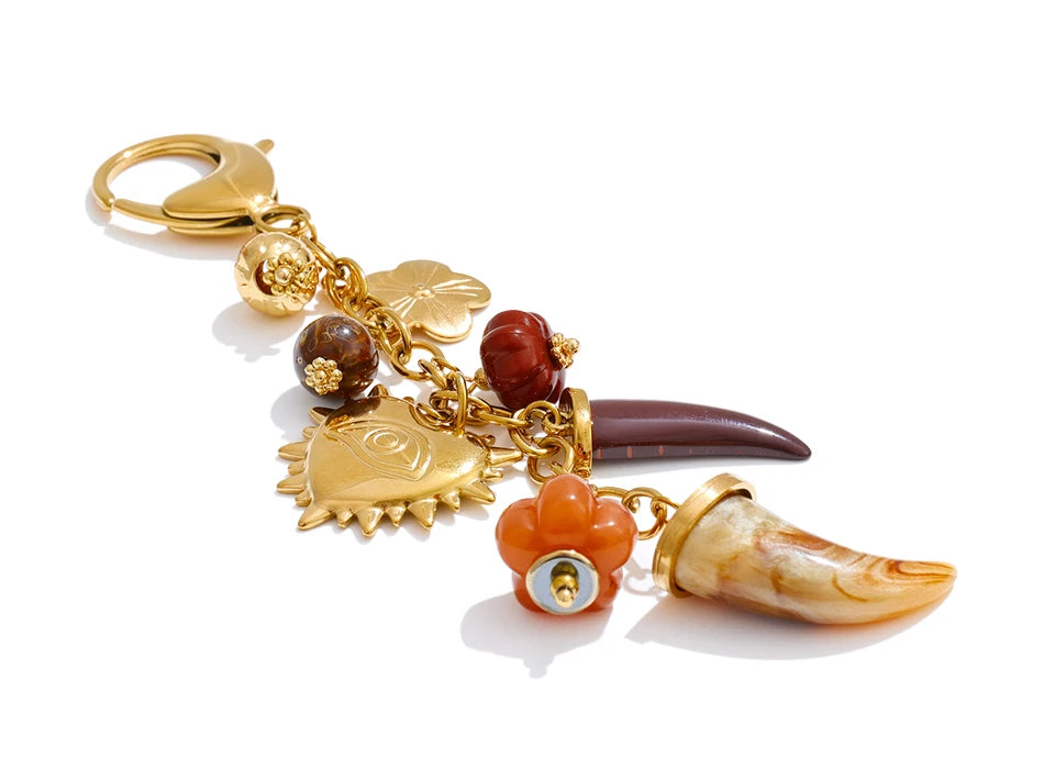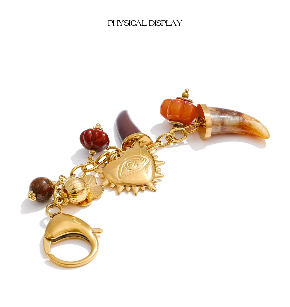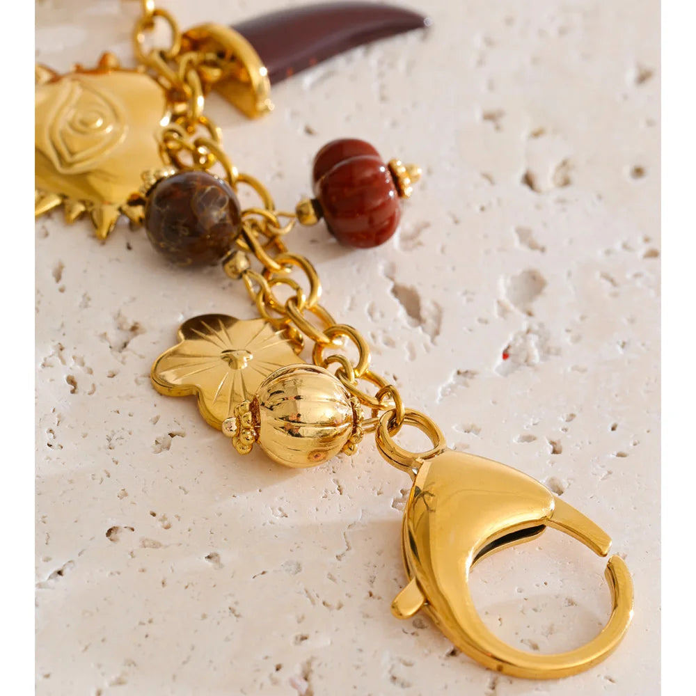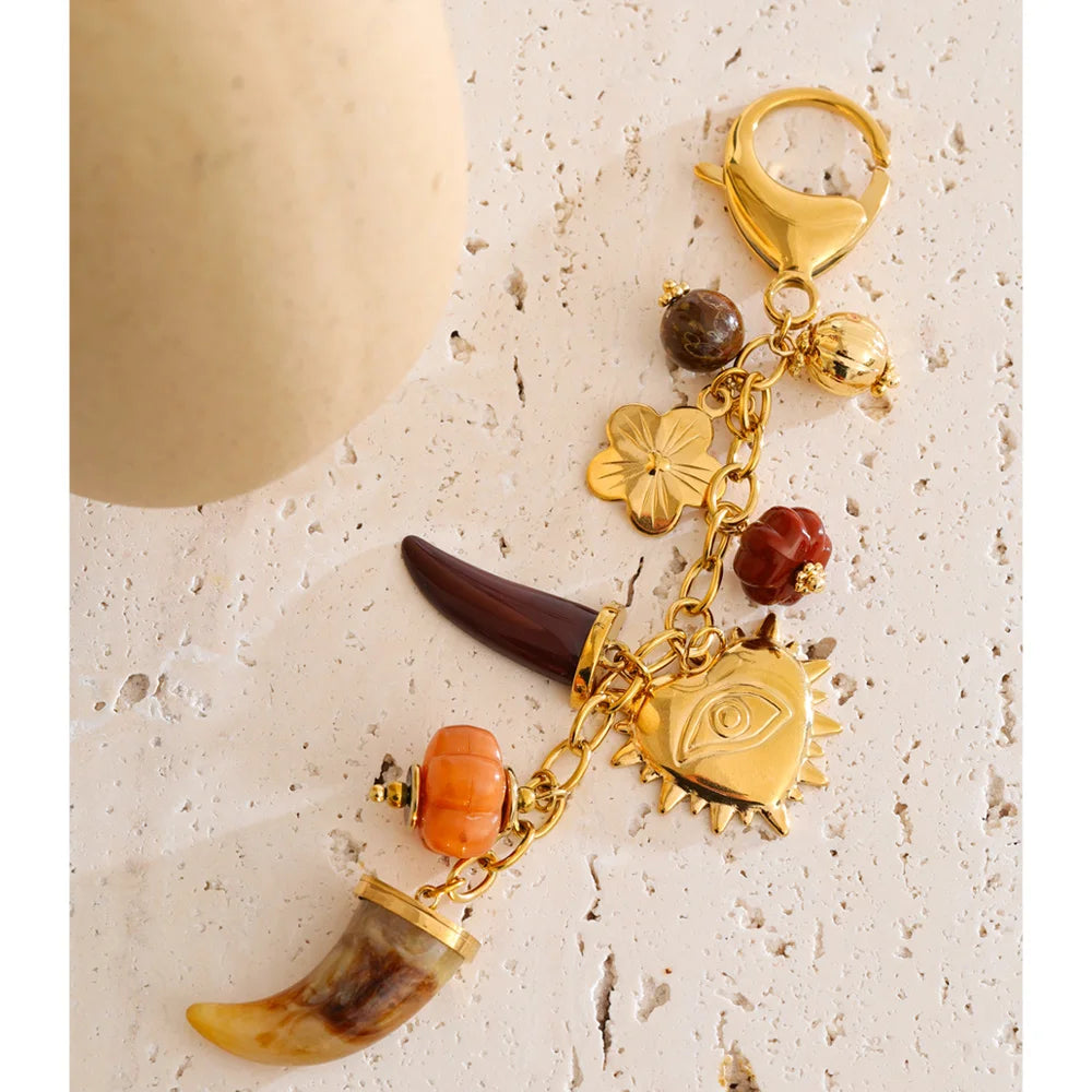 This piece blends horn charms, fiery textures, and earthy tones for a deep, ancestral aesthetic. A bold, warrior-energy talisman.