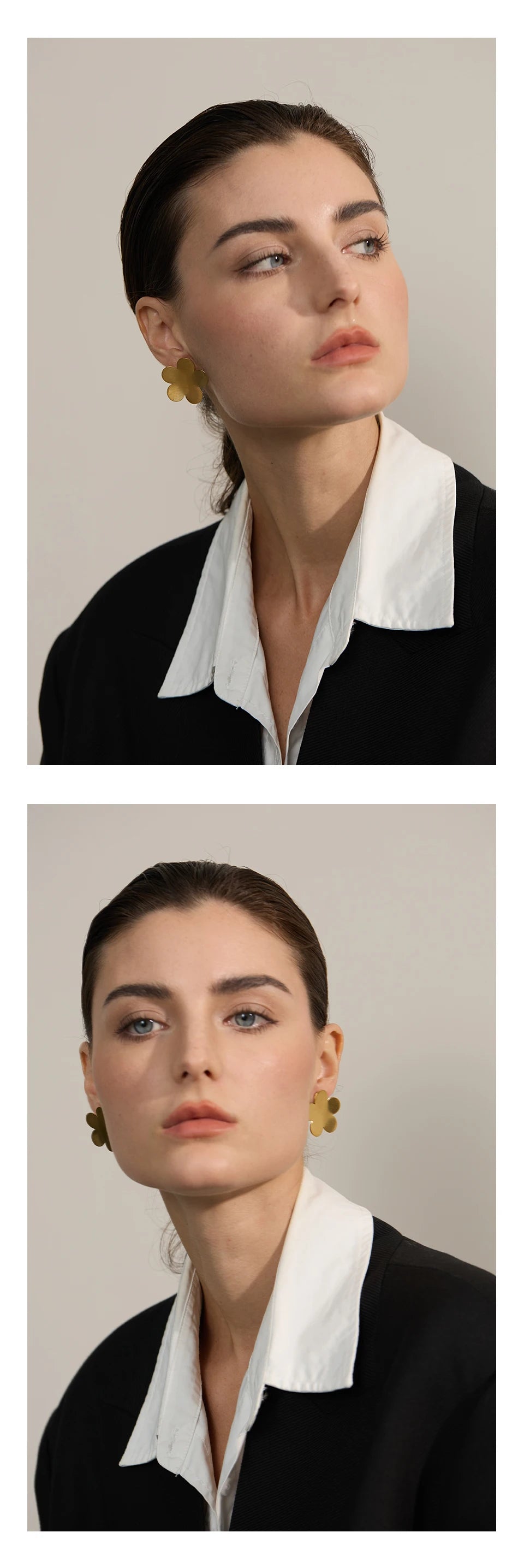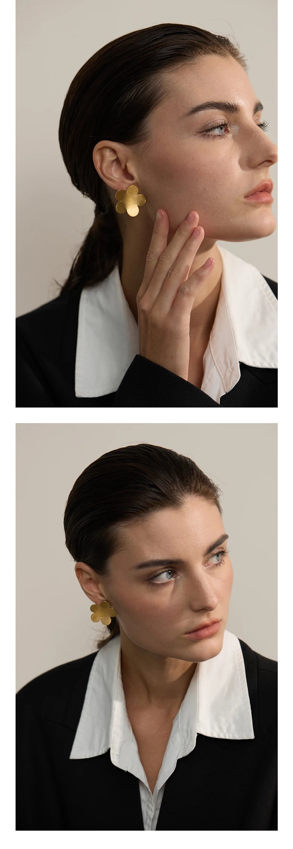 Modern floral studs with a clean matte-gold finish. Chic, minimalist, and waterproof — a true every-day essential.