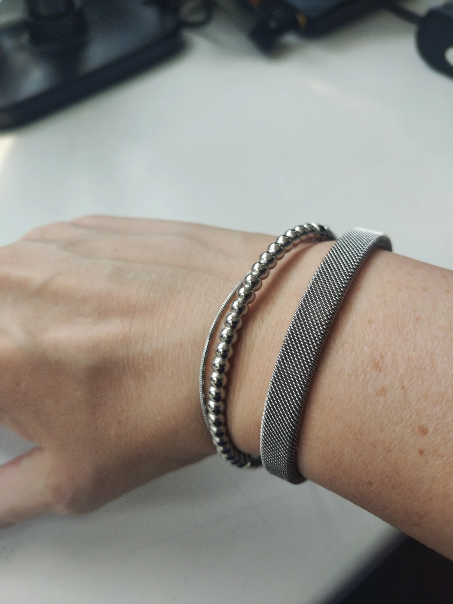 A sleek bracelet made of polished golden beads, perfect for stacking or wearing solo. Its waterproof and anti-tarnish finish guarantees a lasting shine, making it a must-have for effortless everyday elegance.