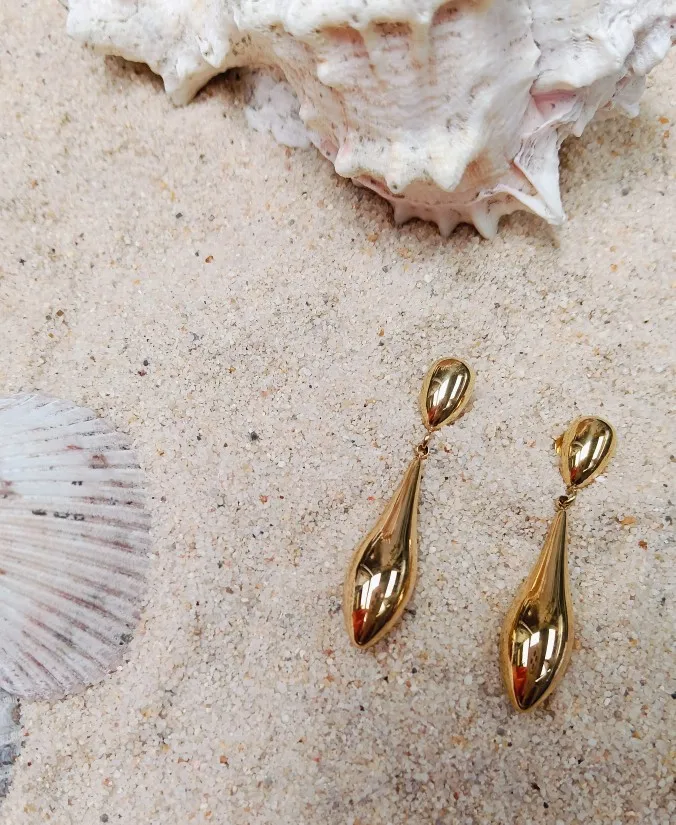 Timeless and elegant, these teardrop earrings flow with soft curves that reflect light beautifully. Their polished finish creates a refined look that transitions effortlessly from daywear to evening elegance, making them an essential pair for every jewelry lover.