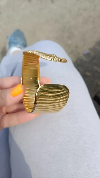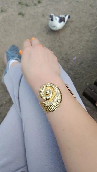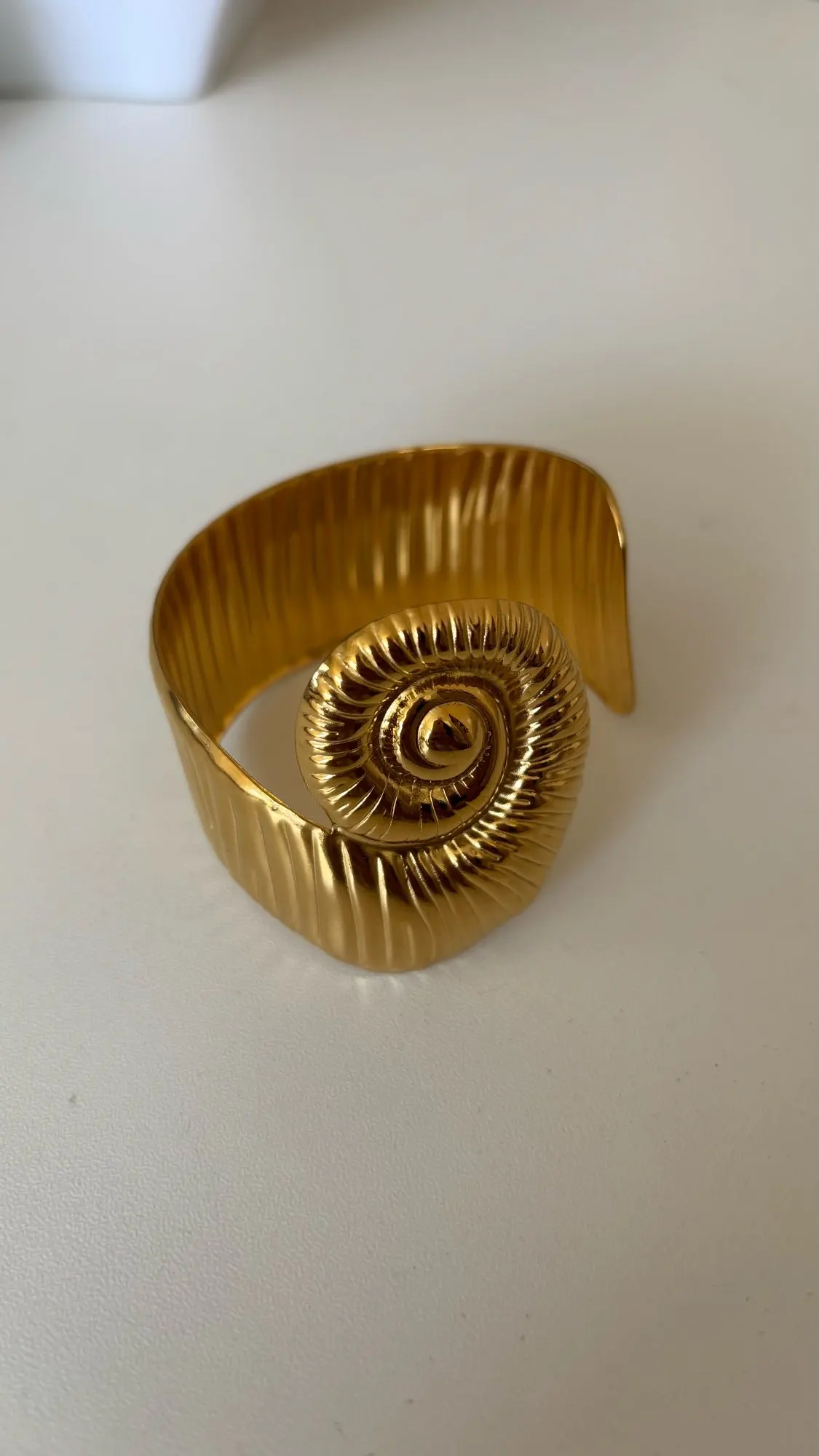 Wrap your wrist in elegance. This Golden Spiral Bracelet, features a smooth golden swirl that reflects sunlight and movement. Modern, minimal, and forever gold.