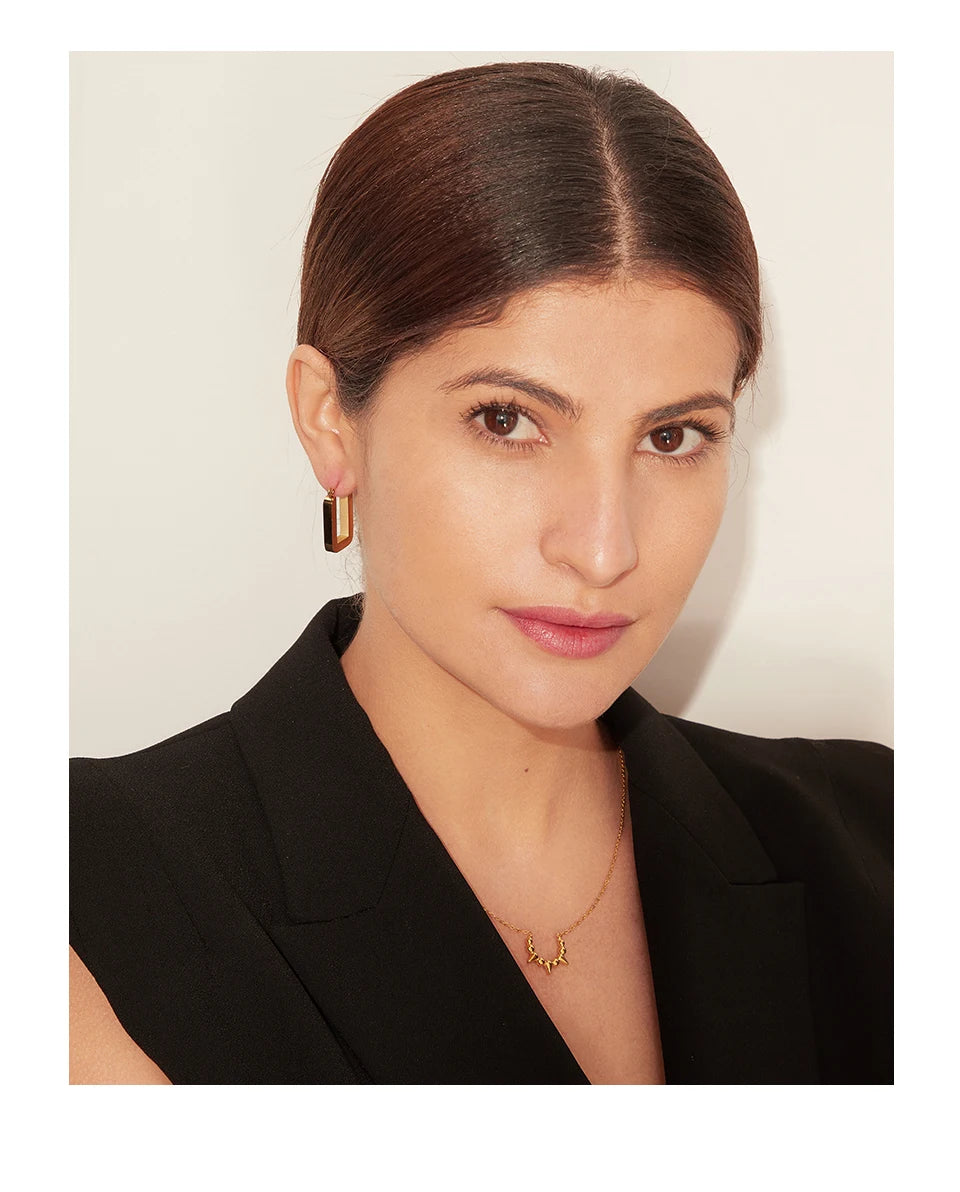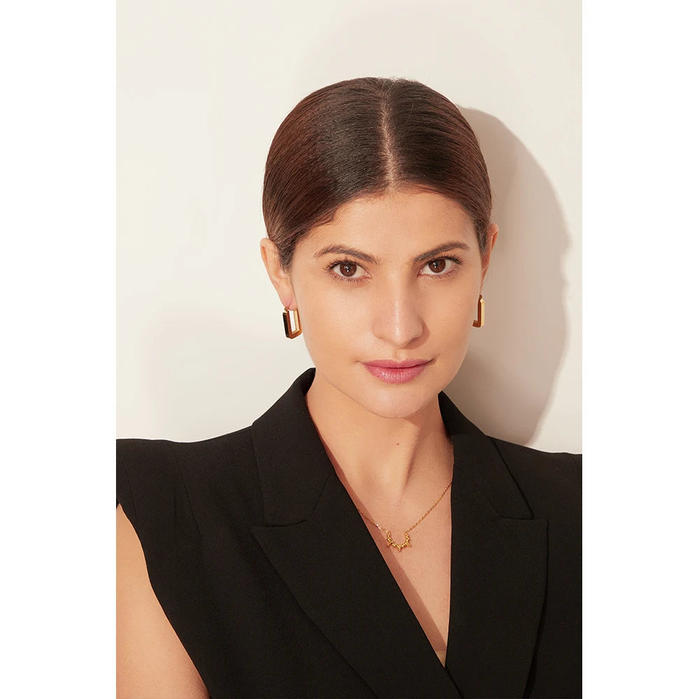 Bold and modern, these rectangular gold earrings bring a powerful edge to your style. Their sleek geometric silhouette makes them the perfect accessory for confident, fashion-forward looks, whether paired with workwear or evening outfits.