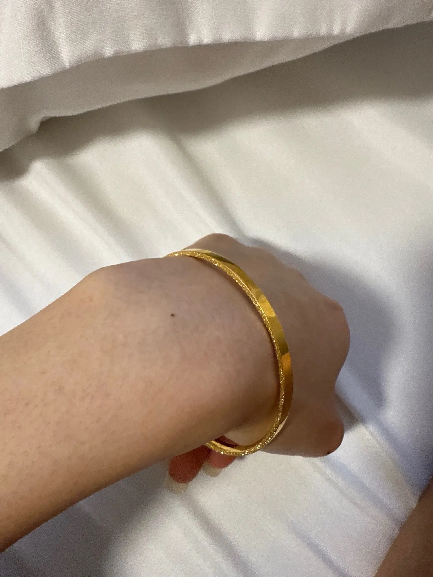 A timeless plain bangle designed for effortless elegance. Its clean, minimalist look makes it a versatile staple that can be stacked for a bold statement or worn solo for a touch of refined simplicity. A must-have in every jewelry lover’s collection.