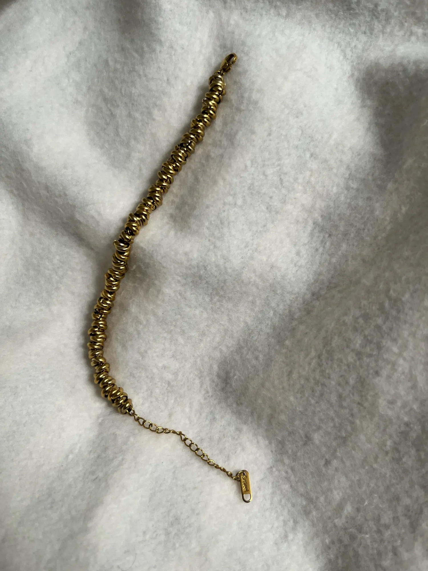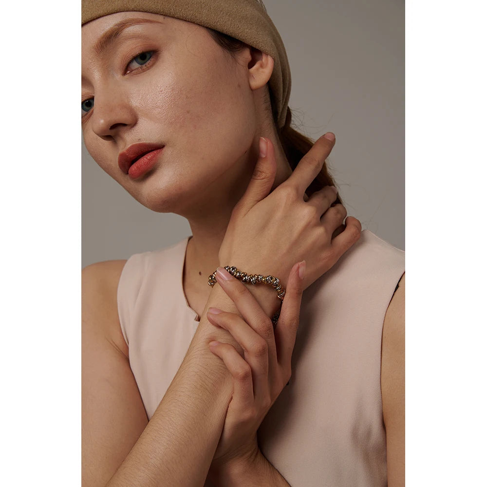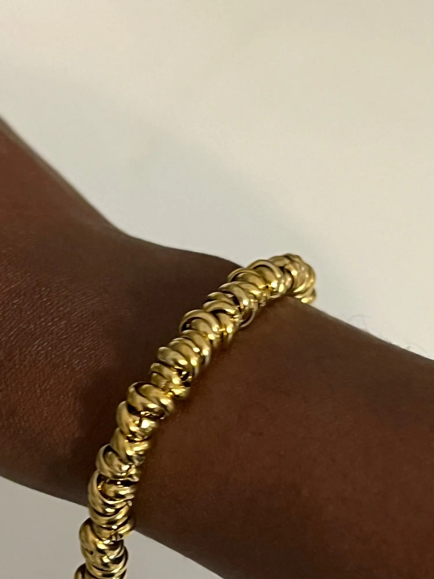 A striking bracelet made with a series of gold, silver, and bronze-toned beads that create depth and shine. Its metallic mix makes it versatile for pairing with all your favorite accessories.