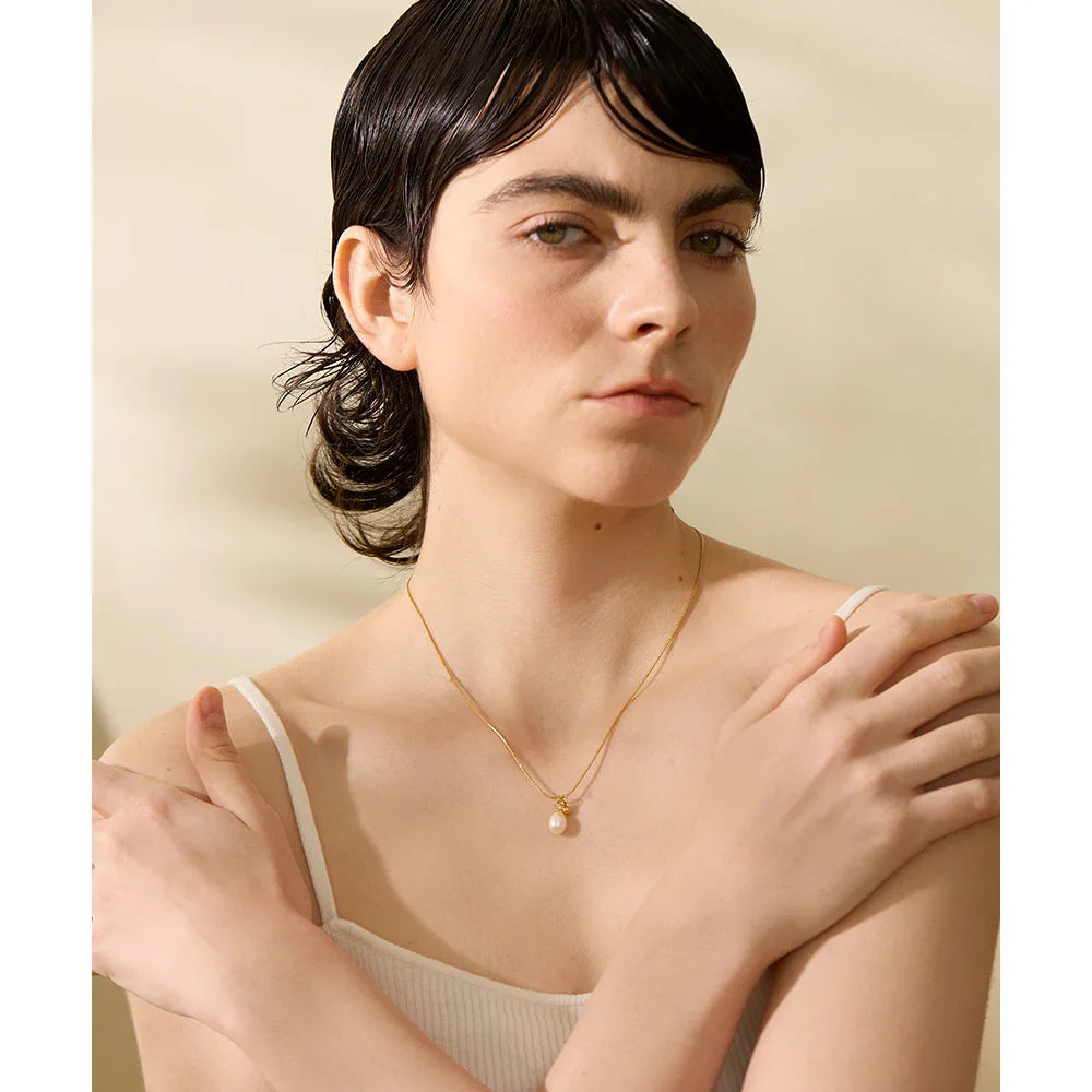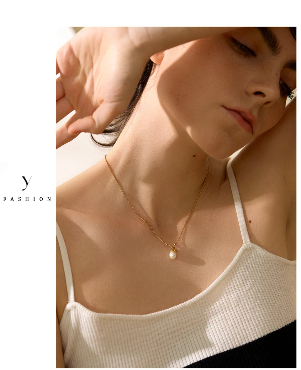 A delicate pendant necklace with a glowing pearl drop and golden charm. Perfectly versatile, it brings elegance whether worn solo or layered with other favorites.