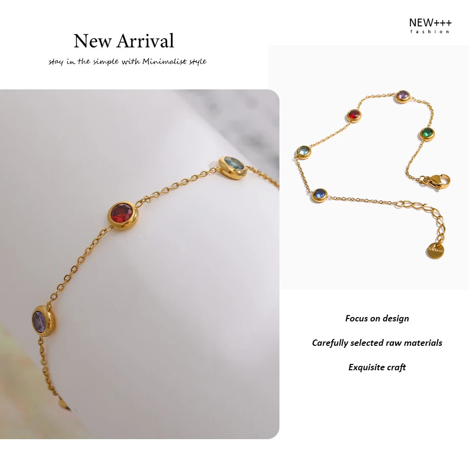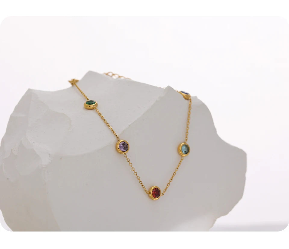 Color meets elegance in this bracelet, detailed with multicolored stones for a vibrant touch. With its waterproof, anti-tarnish finish, it’s a cheerful statement piece that brightens up any look.