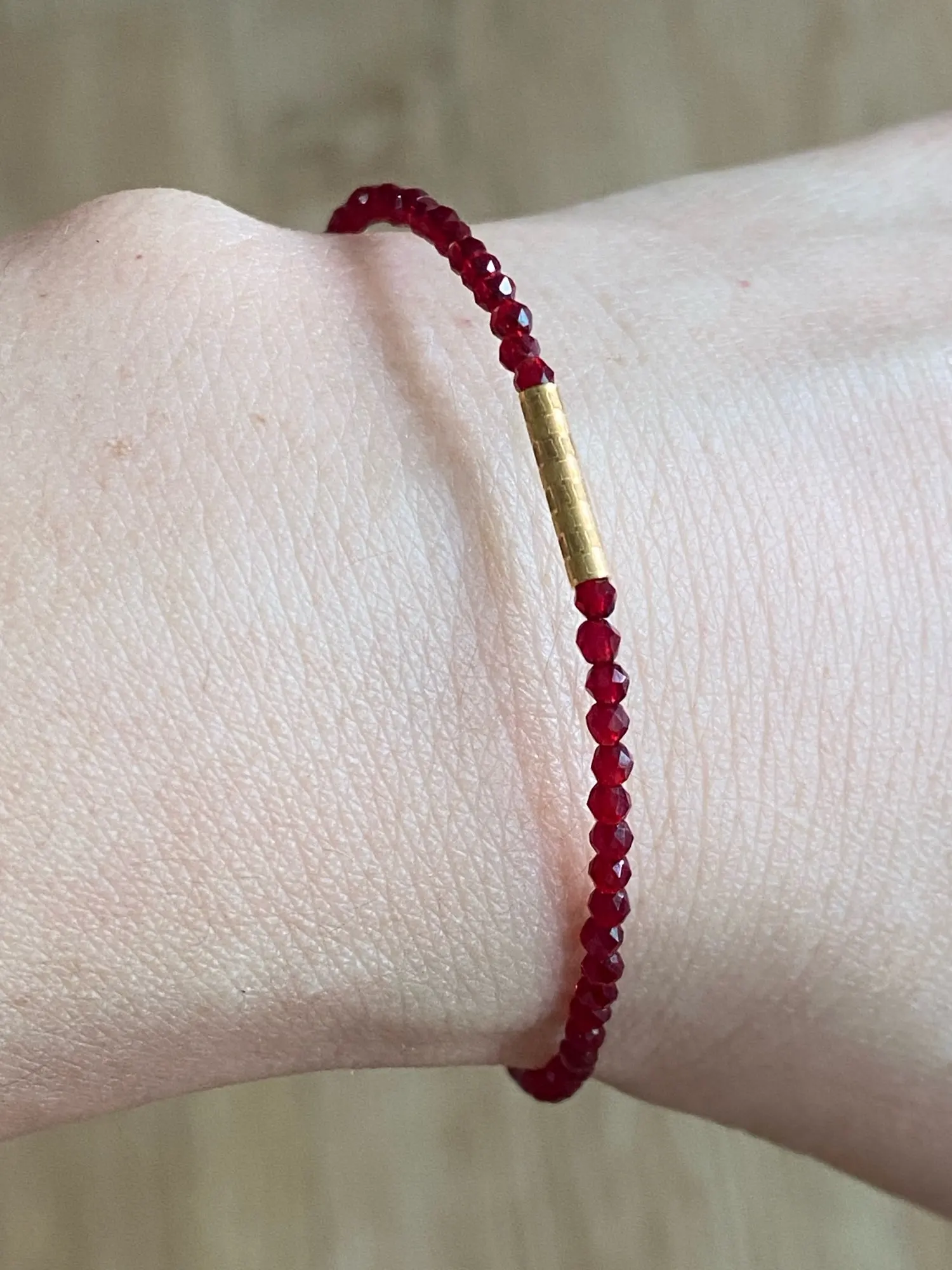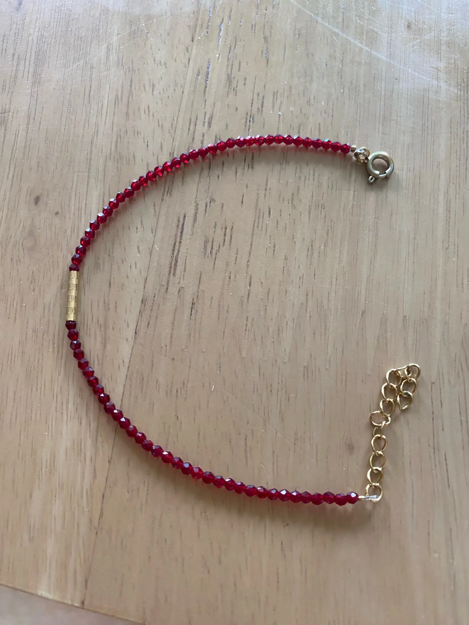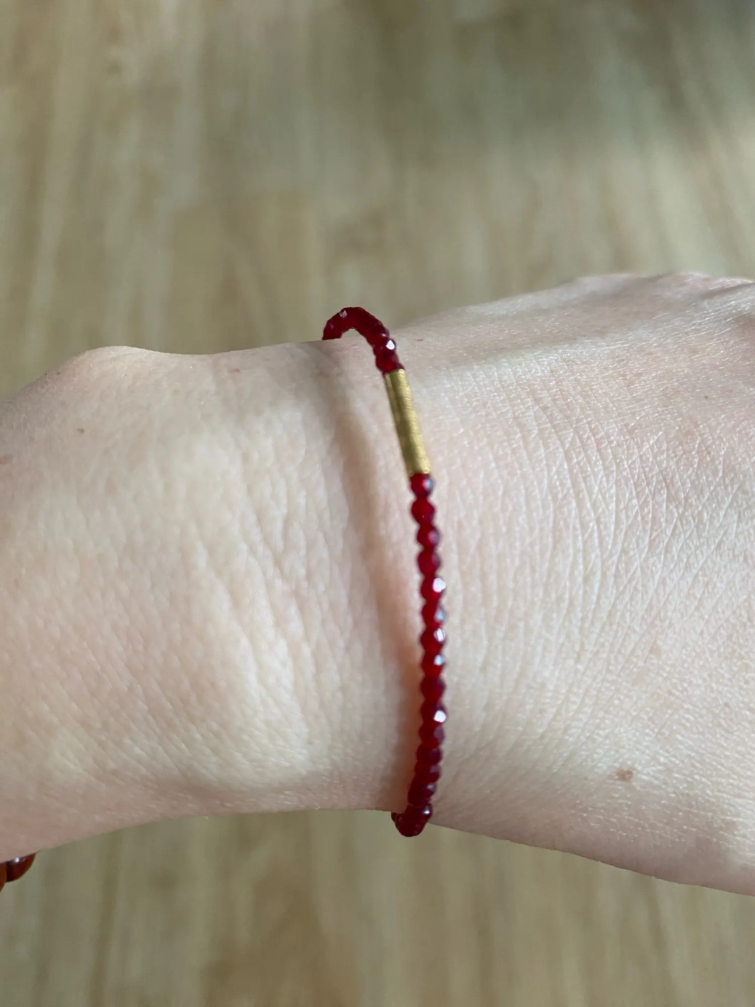 Delicate yet powerful. The deep red beads symbolize passion and confidence, while the adjustable gold chain adds elegance and versatility. Wear it alone for a soft accent or stack it for a stronger statement.
