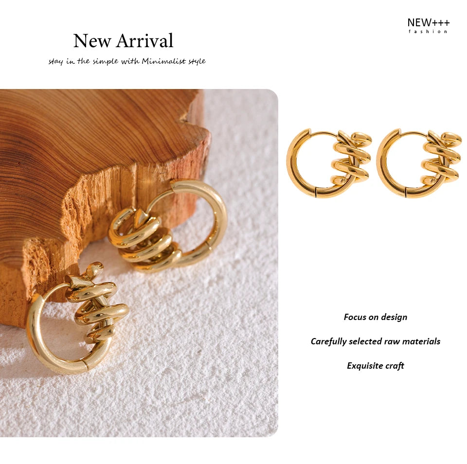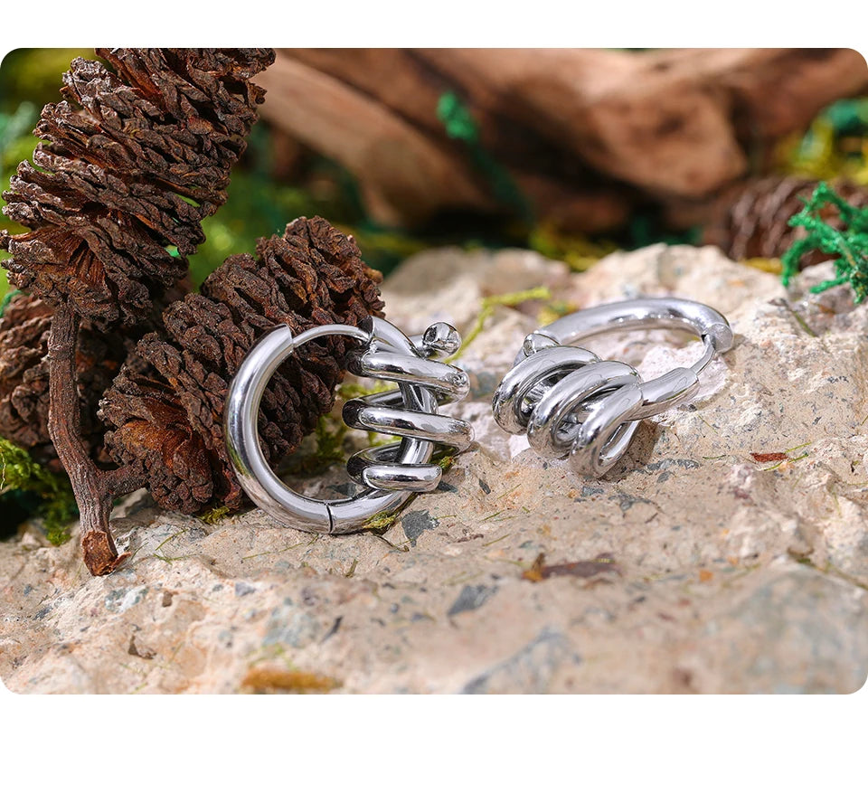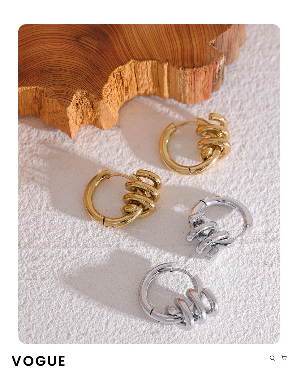 Add a bold twist to your everyday look with these sculptural hoop earrings. Crafted in premium stainless steel, they are 100% waterproof and anti-tarnish, designed to keep their shine season after season.